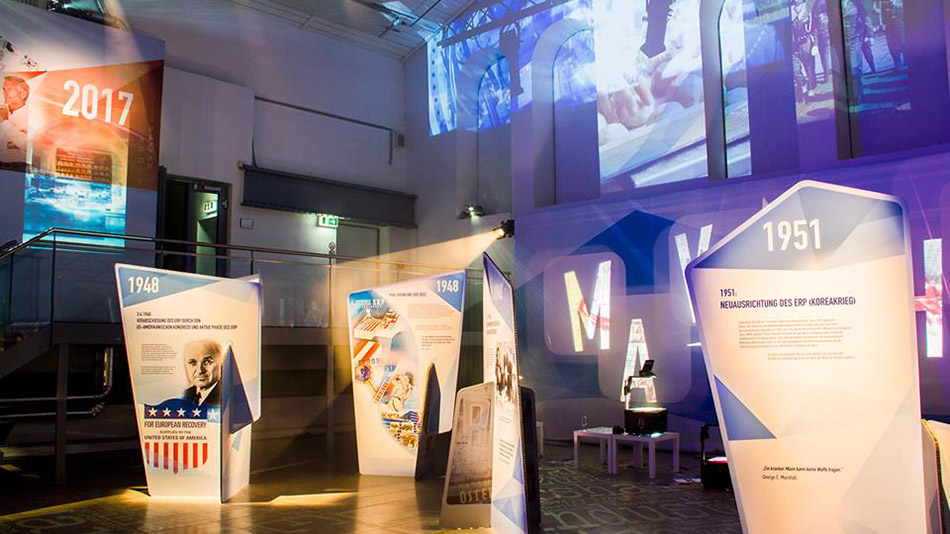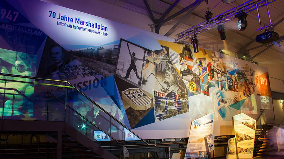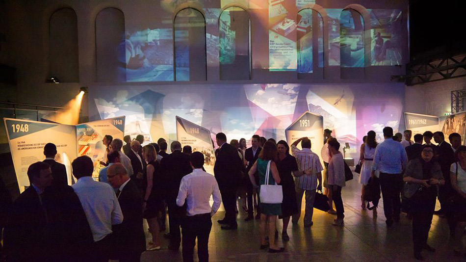 der US-Botschaft in Wien, Eugene S. Young – demonstrieren diesen Brückenschlag zwischen Vergangenheit und Zukunft. „70 Projektionen für 70 Jahre": Unter der künstlerischen Leitung von Virgil Widrich gestaltete ein multidisziplinäres Team die Veranstaltung in der METAStadt am 21.6.2017 und eine Wanderausstellung im Auftrag von Austria Wirtschaftsservice Gesellschaft mbH (ERP-Fonds).
