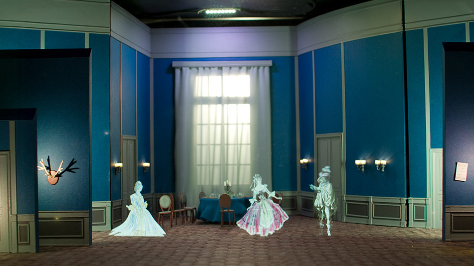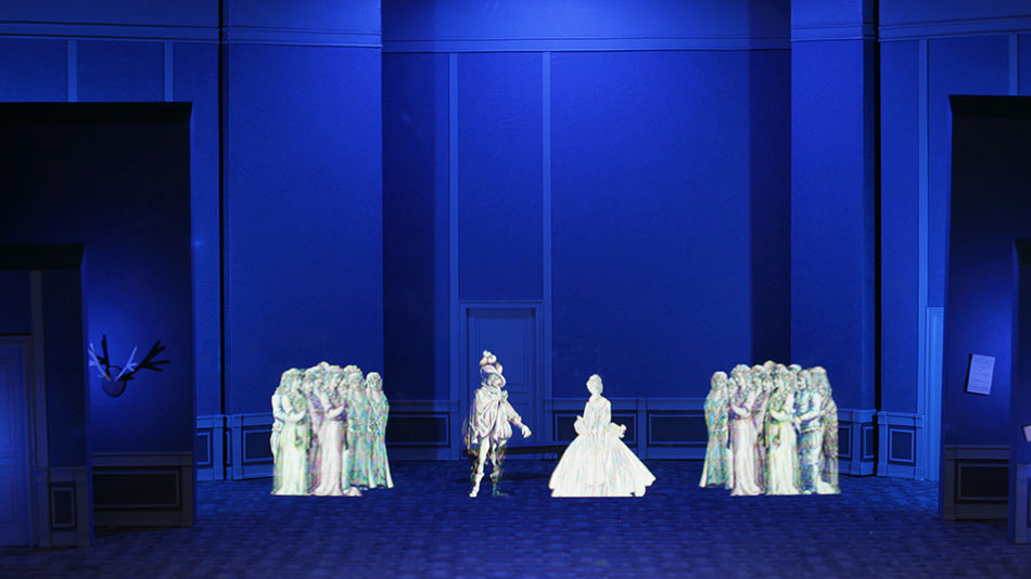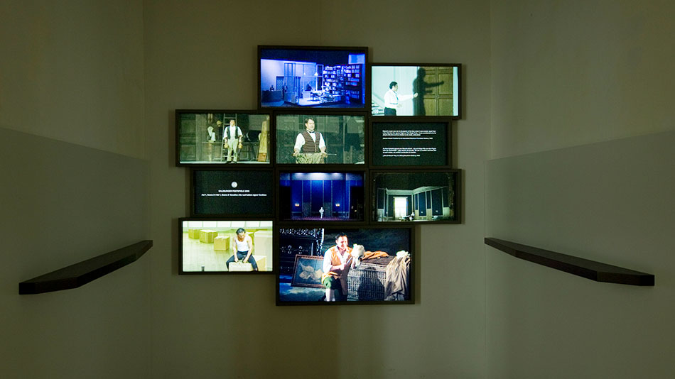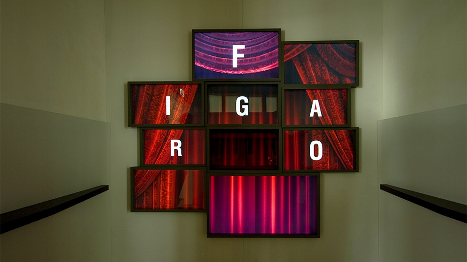 Die raumgreifende Medieninstallation „Figaro Parallelo“ erlaubt anhand von 10 Szenen einen vergleichenden Blick auf sieben unterschiedliche Inszenierungen von “Le Nozze di Figaro” der letzten Jahre: Salzburger Festspiele (2006), Opernhaus Zürich (2007), Gran Teatro La Fenice di Venezia (2011), Festival d’Aix-en-Provence (2012), Wiener Staatsoper (2013), The Metropolitan Opera New York (2014) und Royal Opera House Covent Garden (2015). Im Zentrum bewegt sich der historische Figaro als Ausgangspunkt und Spiegelprojektion in einem Bühnenmodell, welches von der Inszenierung 2011 im Gran Teatro La Fenice di Venezia inspiriert ist.