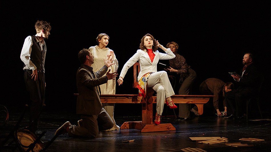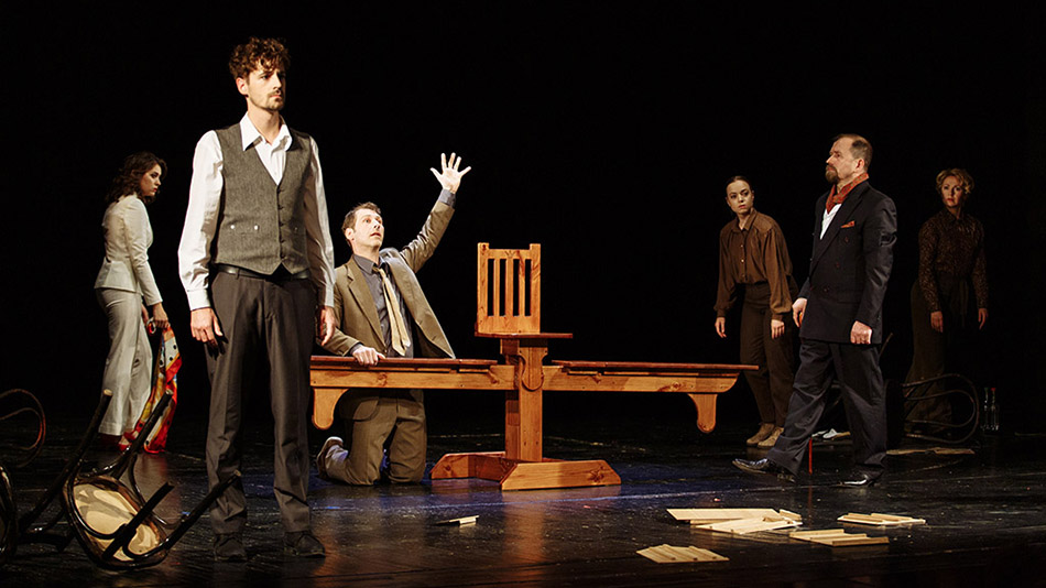 Die Regisseurin Ira Prodeus versetzt die ProtagonistInnen des Stücks in einen Ort ohne Raum und Zeit. Wie nach einem Schiffbruch bleiben den Charakteren nur einige Reste ihres Lebens erhalten – kaputte Stühle, Holzsplitter, Fetzen von alten Zeitschriften und Büchern. Die schwebenden Projektionen von animierten Werken von Bosch und Breughel und die zerreißenden Rhythmen des Sounds unterstreichen die Menschenfeindlichkeit dieses Lebensraumes. Trotz allem versuchen die ProtagonistInnen hier zu überleben. Verzweifelnd suchen sie nach dem Sinn des Lebens, kämpfen um ihr Recht auf Selbstbestimmung und Glück und versuchen der erdrückenden Leere des Daseins zu entkommen.