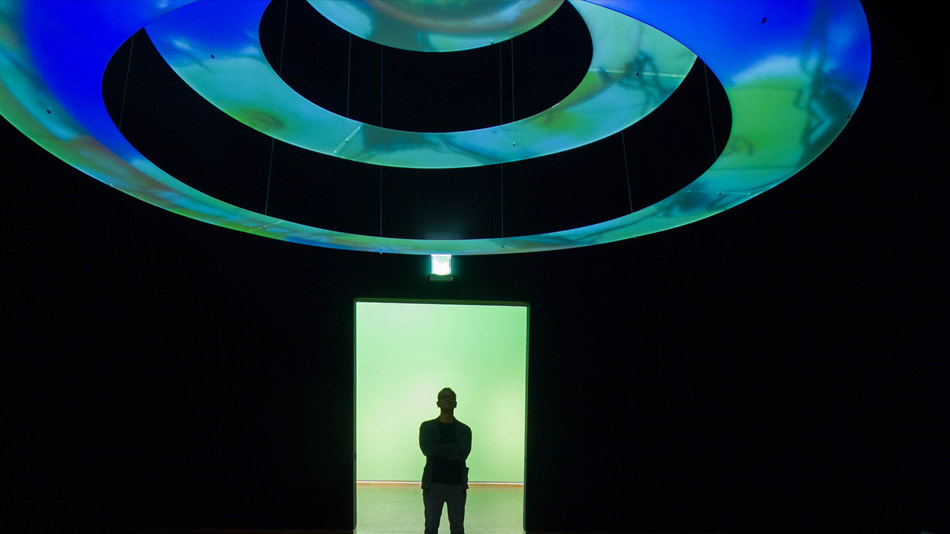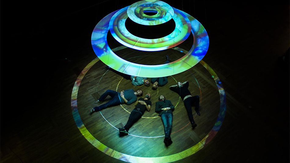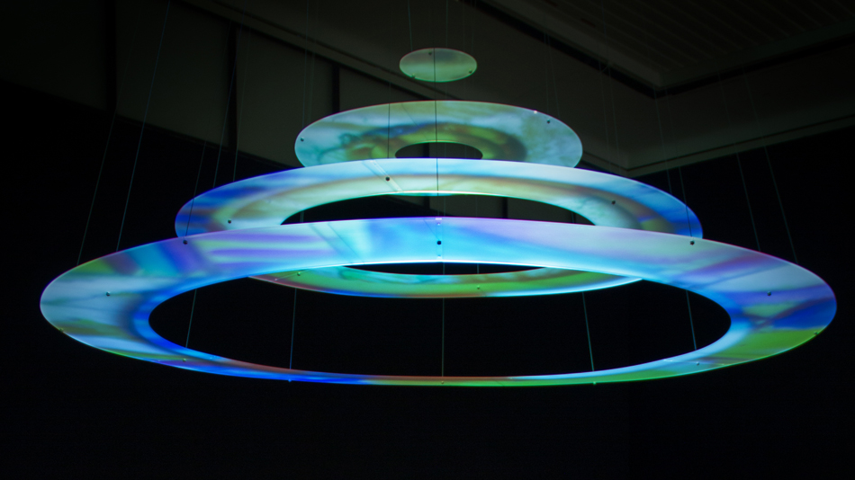 „Parallaxis“ – Medieninstallation für die Ausstellung “Farbenrausch – Meisterwerke des deutschen Expressionismus” im Leopold Museum. Die Medieninstallation besteht aus einer Scheibe, drei Ringen